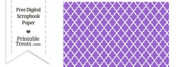 This cute large Moroccan tile pattern digital scrapbook paper is decorated with an amethyst Moroccan tile pattern with white outline.