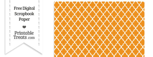This cute large Moroccan tile pattern digital scrapbook paper is decorated with a carrot orange Moroccan tile pattern with white outline.