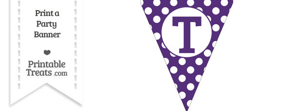 Download and print this cool dark purple polka dot pennant flag capital letter T to create your own party banner.