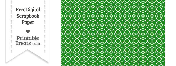This awesome mini quatrefoil digital scrapbook paper is decorated with a white quatrefoil pattern on a forest green background.
