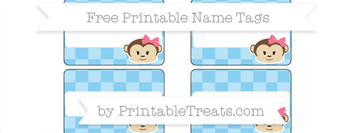 Enjoy this set of cute baby blue checker pattern girl monkey name tags you can use for parties, labeling things, or as gift tags.