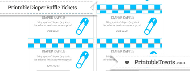 Here are some cute deep sky blue checker pattern diaper pin diaper raffle tickets you can print, cut, and send to guests along with your baby shower invitations.