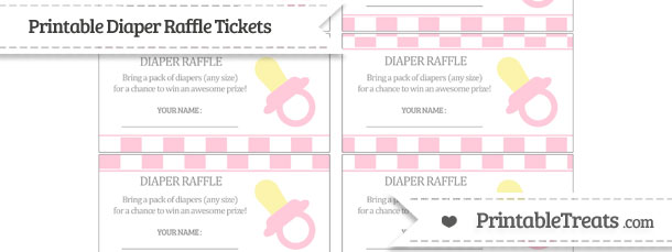 Here are some cute pink checker pattern baby pacifier diaper raffle tickets you can print, cut, and send to guests along with your baby shower invitations.